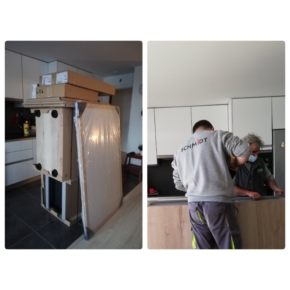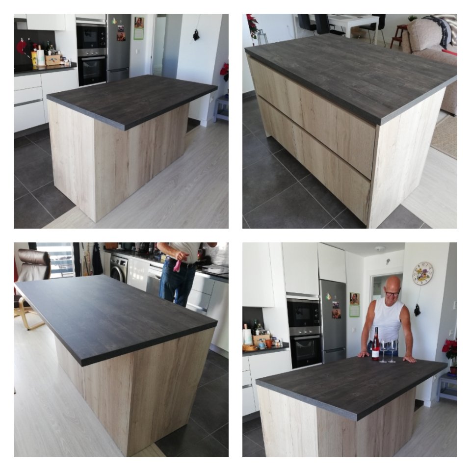Vi har ju också fått vår köksö. Vi fick ju bort väggen mellan kök och vardagsrum, i december. Och bara det blev ett jättelyft. Och nu har köksön kommit på plats. Vi beställde den hos Schmidt här i Torre del Mar. I torsdags kom ett hög med delar och i fredags kom 2 montörer och skruvade ihop allting och ställde den på plats. Vi är supernöjda!