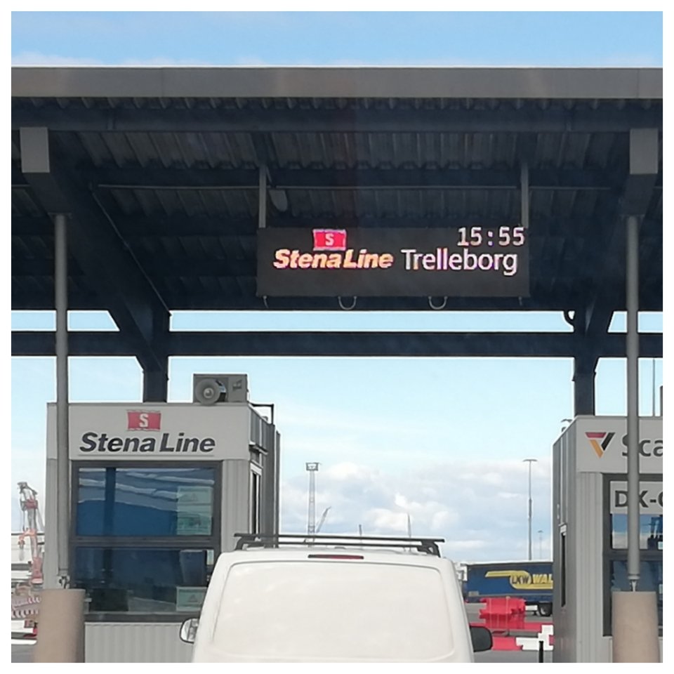 Väl i Trelleborg (där de ville kika på passen) kör vi bara bort till ställplatsen ett par kilometer bort. Vi somnar ovaggade och sover så skönt. Och länge. För vi var bra trötta innan vi kom i säng vid 22.30-tiden!