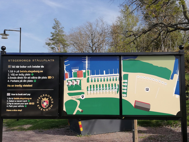 Vi hade bestämt att åka till Stegeborgs Ställplats, ett par mil utanför Söderköping. Såg tidigare att det var fullbokat, men eftersom vi skulle åka på måndagen tänkte vi att det borde inte vara så svårt att få en plats. Nu är det så att denna ställplatsen enbart har bokningsbara platser. Så när vi kom dit var det inte många platser att välja på eftersom vi tänkte stanna 2 nätter. Vi skulle ju få sommarväder… Så när vi kommit fram och kikat på nätet vilka platser som var lediga 2 nätter, bokade vi det. På plats.