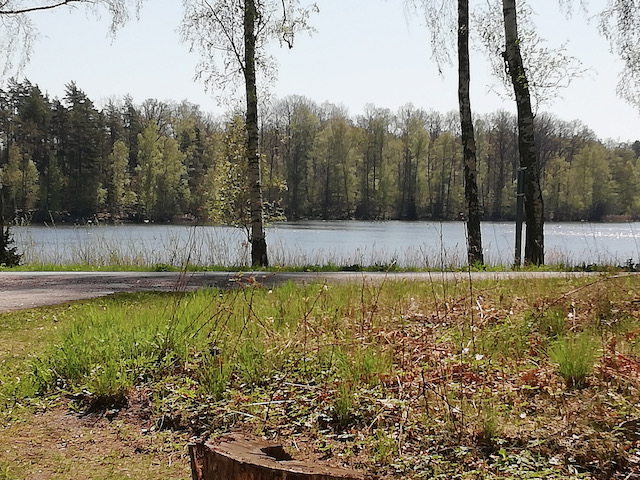 Nej trivseln blev nånting helt annat, när vi sedan for till Vadets parkeringsplats, några mil från Valdemarsvik. Här parkerar man sitt fordon där det finns plats. I gräset. Nära sjön. Det finns ett torrdass här och soptunna. För övrigt är det lugn och ro och vi hör vindens sus och fåglarna som kvittrar. Vi får betala vad vi tycker det är värt att stå här, via swish. Så klart vi swishar en slant! Såna här platser behövs som ett alternativ till Stegeborg, m.fl.