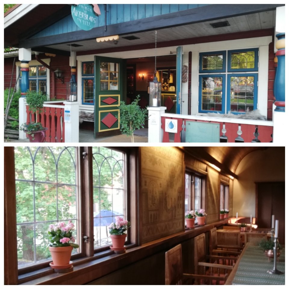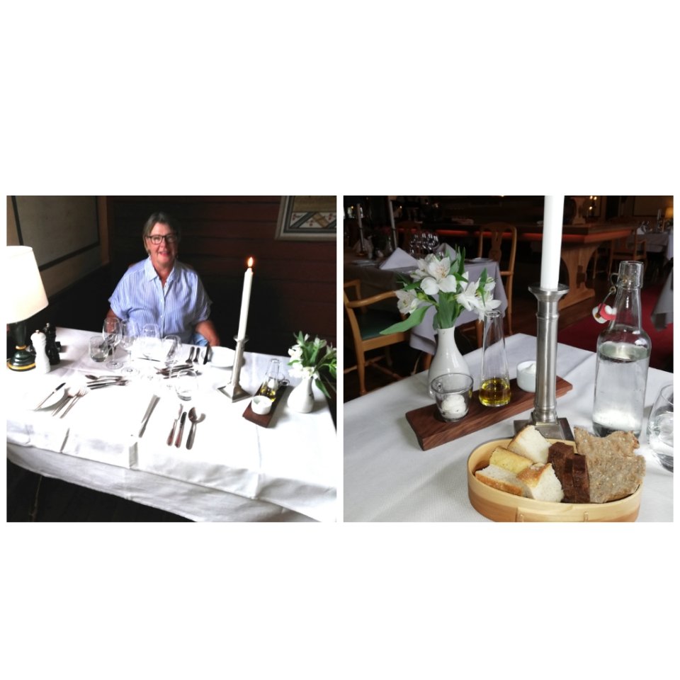 När jag fyllde år i april fick jag bl. a ett presentkort till Åkerblads. Det innehöll en 7 rätters avsmakningsmeny med vinpaket. Onsdagen den 9/6 hade vi bokat bord, för att få njuta av detta. Vi fick parkera husbilen på parkeringen (eftersom vi var deras gäster – annars finns en camping i Tällberg)