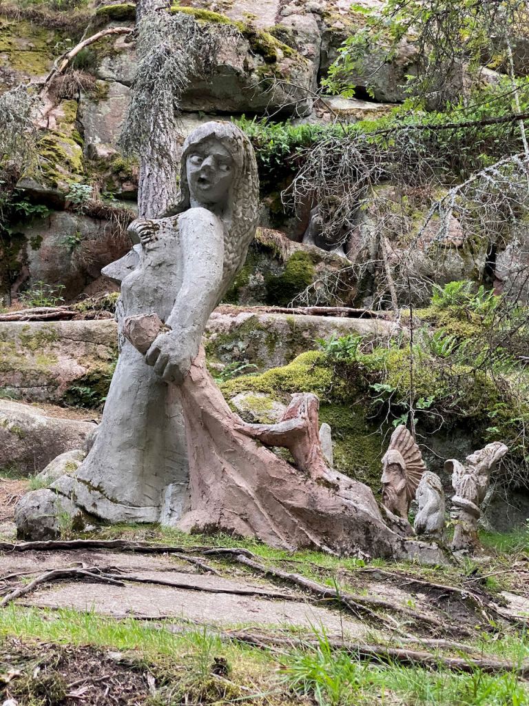 Så när vi såg Jätten och stigen upp på berget måste vi ju upp. Och det var en imponerande samling, med fanstastiska skulpturer. Sån detaljrikedom konstnären fått till, i betong!