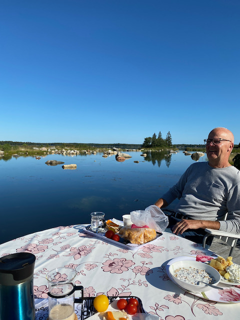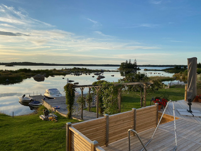 När vi besökte våra vänner utanför Gävle, var det svårt att komma närmare havet. Det bor helt makalöst fint, precis vid kusten. Vi övernattade hos dem och frukosten intog vi på bryggan. Kaffet smakade nog extra gott, där på bryggan, i morgonsolen.