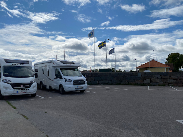 Efter en god natts sömn, vinkade vi hej då till vännerna i Östhammar och fortsatte till Öregrund. Där vi mötte upp med våra Sandvikenvänner som var ute på rull. Det var ju inte så längesedan vi sågs, men det är alltid kul att ses! I Öregrund blåste det halv storm och det var mulet men vi fick en trevlig dag/kväll tillsammans ändå. Lite goda skaldjur och röror inköptes på ”Rökt Fisk” och stekt strömming köptes på en av restaurangerna i hamnen. Stömmingen var bra stekt och det var väldigt gott. Och skaldjuren och de övriga godsakerna smakade mycket gott på kvällen, inne i husbilen .