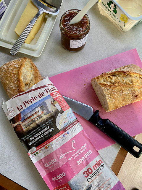 Så klart vi också köper fransk baugette till frukost. Och en tarte till kaffet. Dom kan baka, fransoserna!