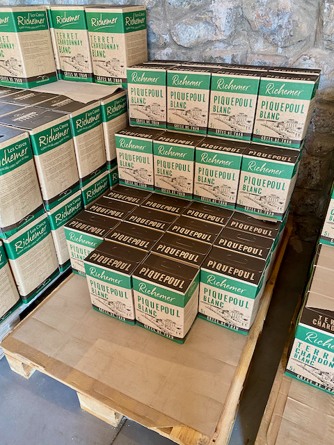 Det blir ett besök på Les Caves Richemer, som ligger en kort bit från ställplatsen. VI har köpt vin många gånger från dem och aldrig blivit besvikna. Jag har till och med vunnit en facebookvinst på deras sida en gång! Denna gång blev det en dunk med god Piquepoul och en flaska Noilly Prat, från”konkurrenten” med samma namn.