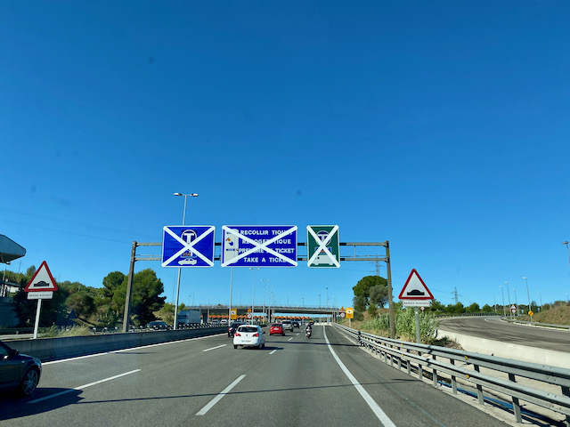 På söndagsmorgonen den 19 september, fortsatte vi vår färd söderut. Vi bestämde oss att köra motorvägen från Beziers till Spanska gränsen. Har ju kört gratisvägen väldigt många gånger och den tar tid. Det är drygt 1 timme längre och det ville vi inte. Denna sträckan kostade ca 20€ för oss, vilket vi tycker är ganska dyrt men acceptabelt. När vi kom in på spansk motorväg möttes vi av detta – stängda vägtullstationer. Spanien fick ju ytterligare sträckor morotorväg som blev gratis från 1 september.