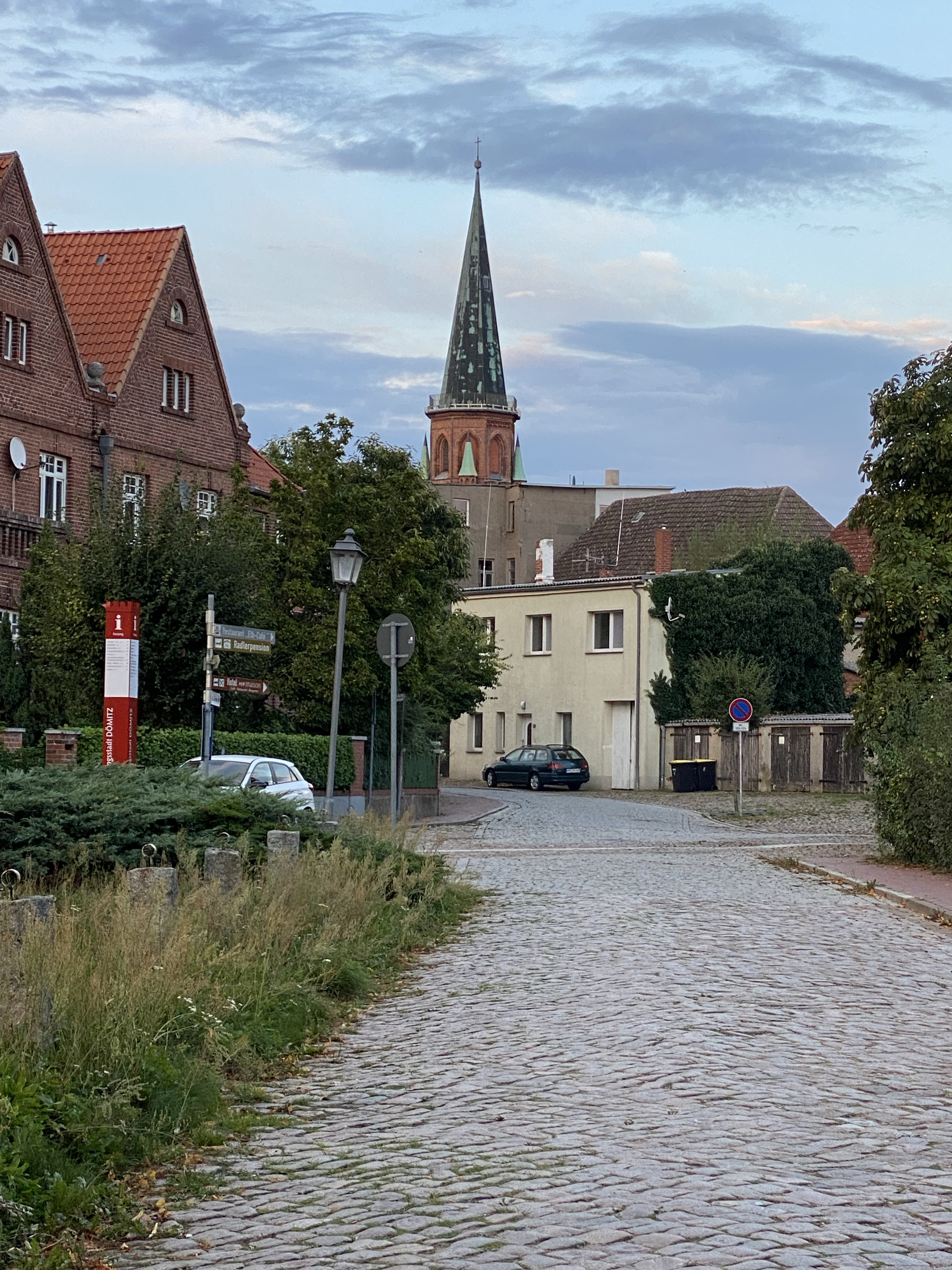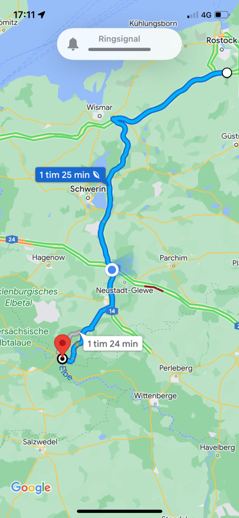 Vi stannade i Dömitz En gammal stad som var viktig som gränspassage under/efter andra världskriget. Här står vi nu precis bredvid den gamla borgen, gratis och utan service. Flygbilden över borgen har jag lånat från Google