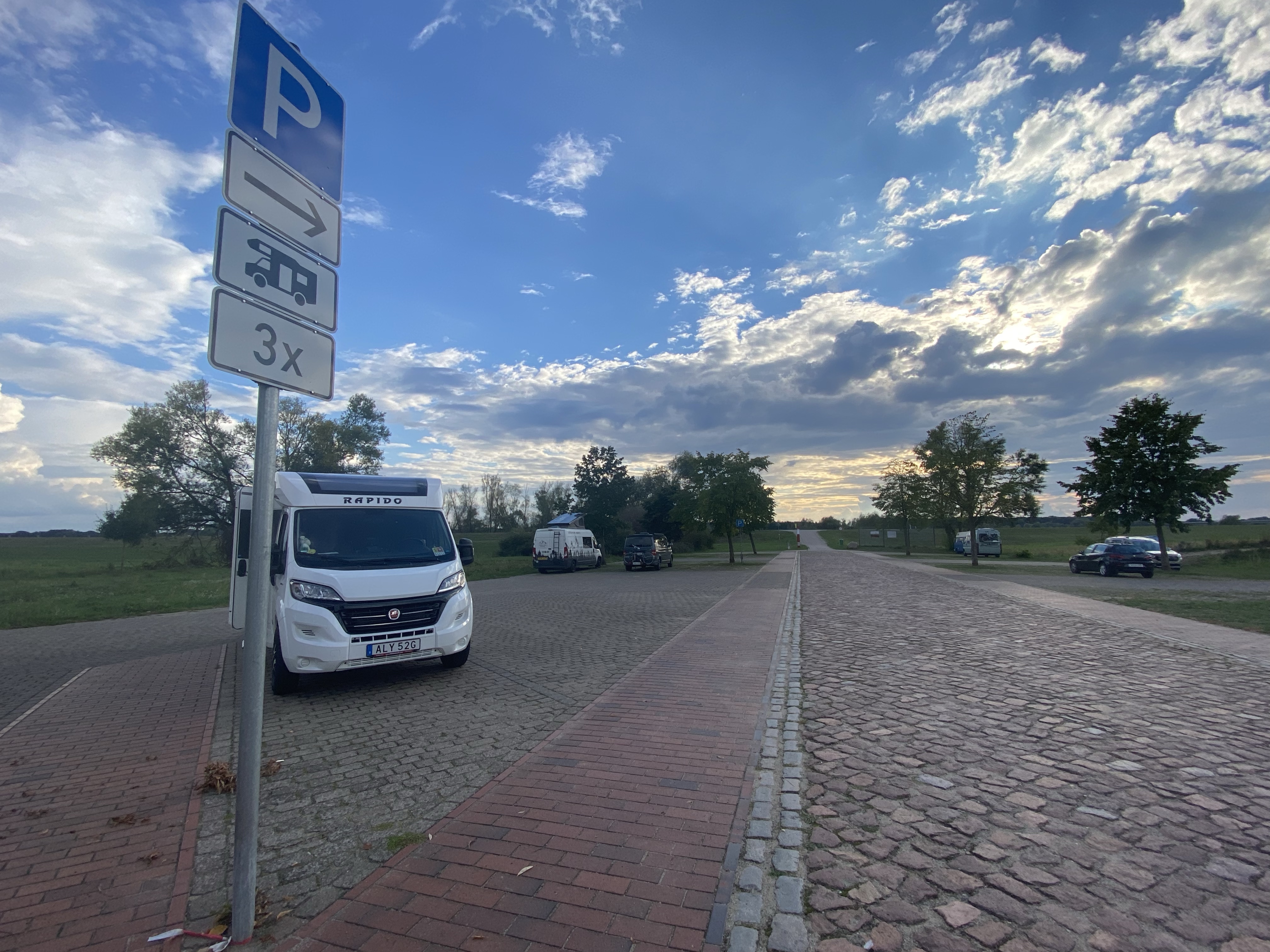 Vi lämnade Jönköping i regn men kom fram till Trelleborg i solnedgång. Vi sov skönt på nån parkering vid en kyrka strax utanför stan. Klockan ringde redan vid 05.00 för Stena Line ville att vi skulle vara på färjeterminalen 1 timme före avgång. Dvs vi skulle vara på plats senast 06.30 Det var vi. Det dröjde inte länge förrän vi fick köra på.