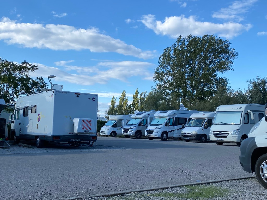 Under våra resor, både nu året om – och tidigare semestrar – har vi ganska ofta hamnat i Marseillan-Plage. Så blev det nu med. Det är nåt visst med det här området som gör att jag känner mej hemma här. Vad vet jag inte. Men jag vet att jag gärna stannar till här i trakterna. Just nu befinner vi oss på ställplatsen i stan och sitter och njuter i skuggan.