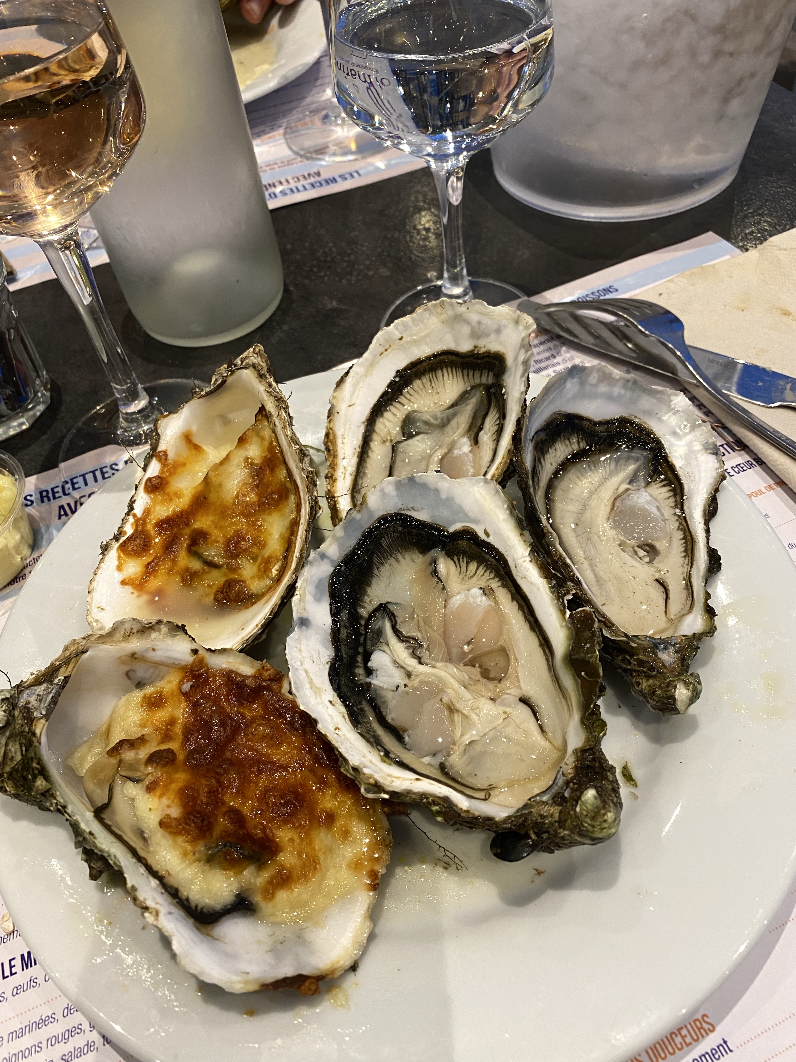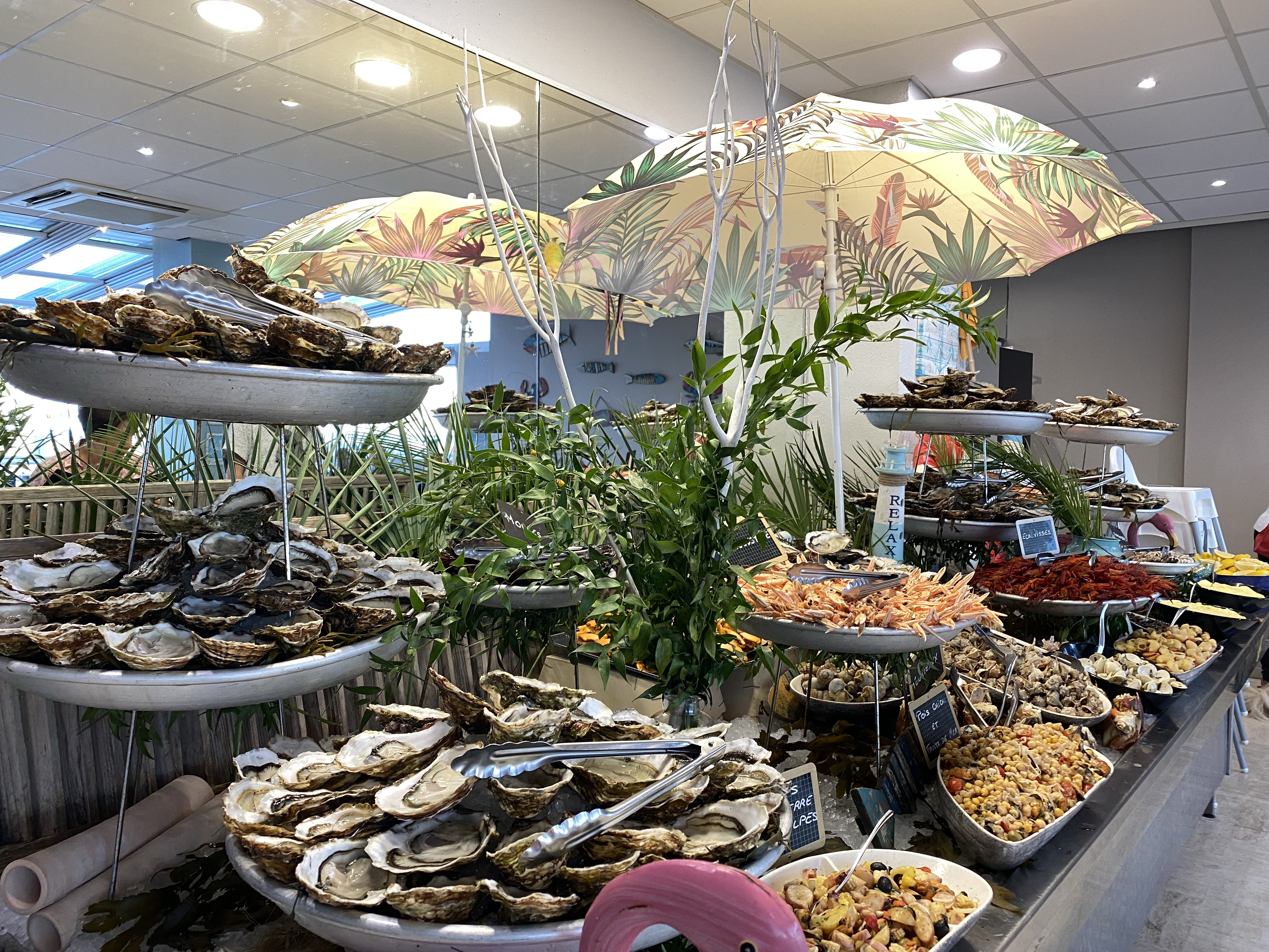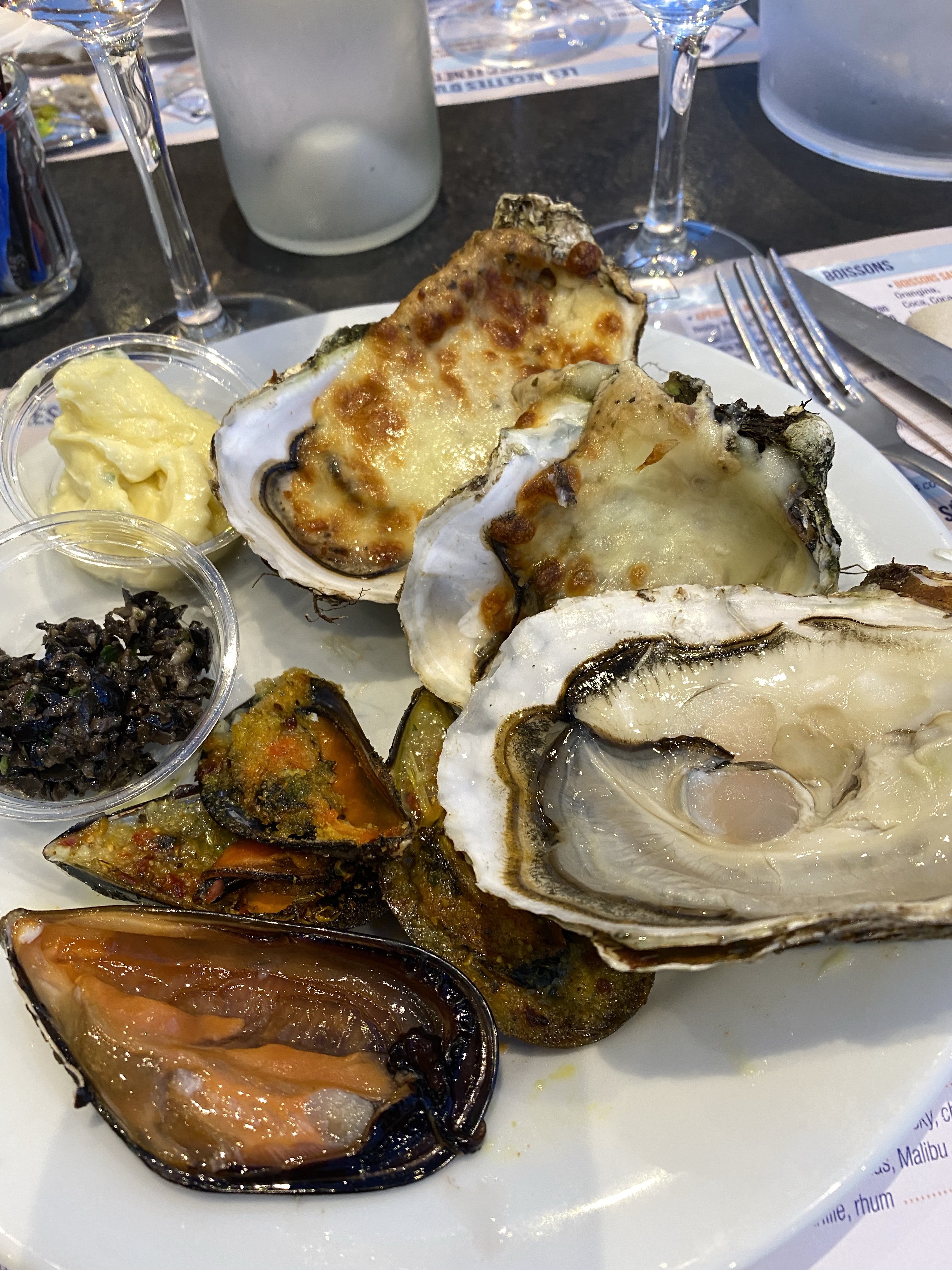 När vi kom hit igår eftermiddag, började jag googla på skaldjursrestauranger. Har du hängt med oss ett tag här på bloggen, kanske du vet att vi älskar fisk och skaldjur. Jag blev alldeles lycklig när jag hittade att La Ferme Marine (som vi ätit på inne i Marseillan) hade en typ filial här, på ett hotell i småbåtshamnen. Lyckades boka bord – det fanns 3 kvar! Så nu i kväll, har vi formligen frossat i skaldjur. 😍 Musslor. Snäckor i olika varianter. Sniglar. Krabba. Räkor. Languster. Kräftor. Sallader. Och ostron – de största och godaste jag någonsin ätit. Och allt är fräscht och färskt eftersom det fångats i etangen här utanför. Musslor och ostron fanns dessutom gratinerade. En helt underbar kväll om du frågar mej! Allt för 30.90€ /person Plus vin.