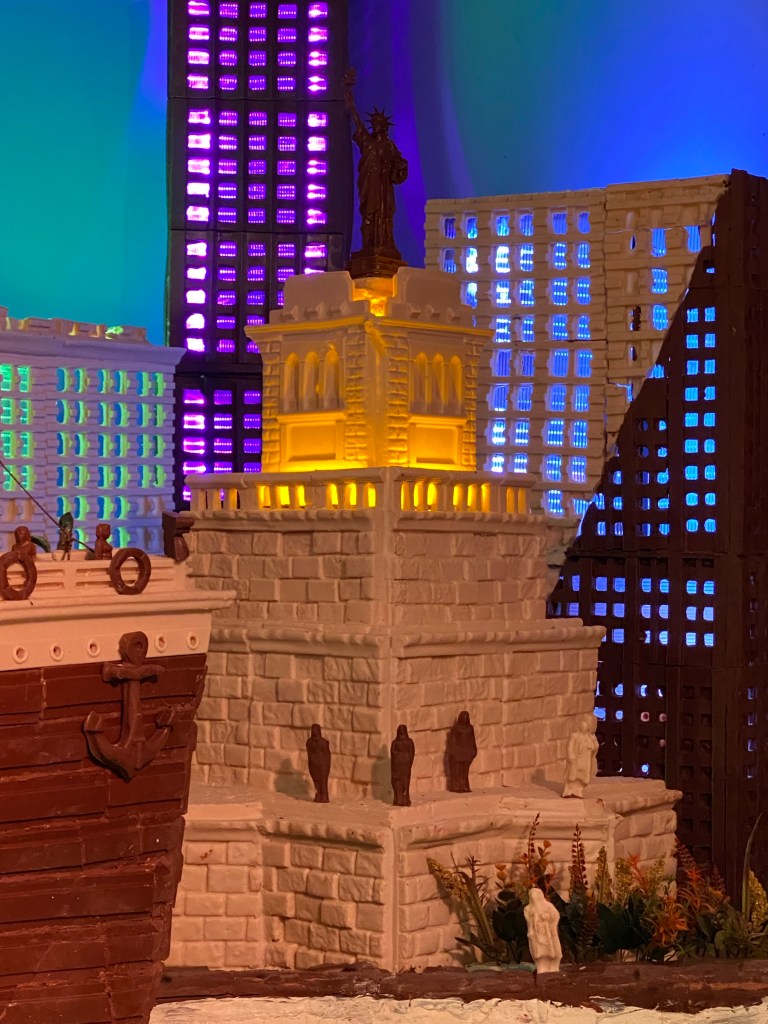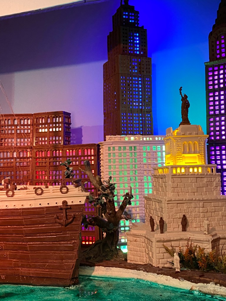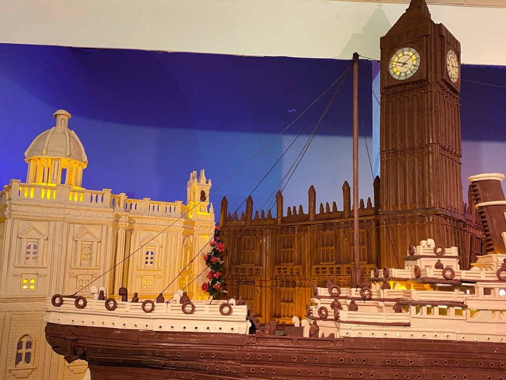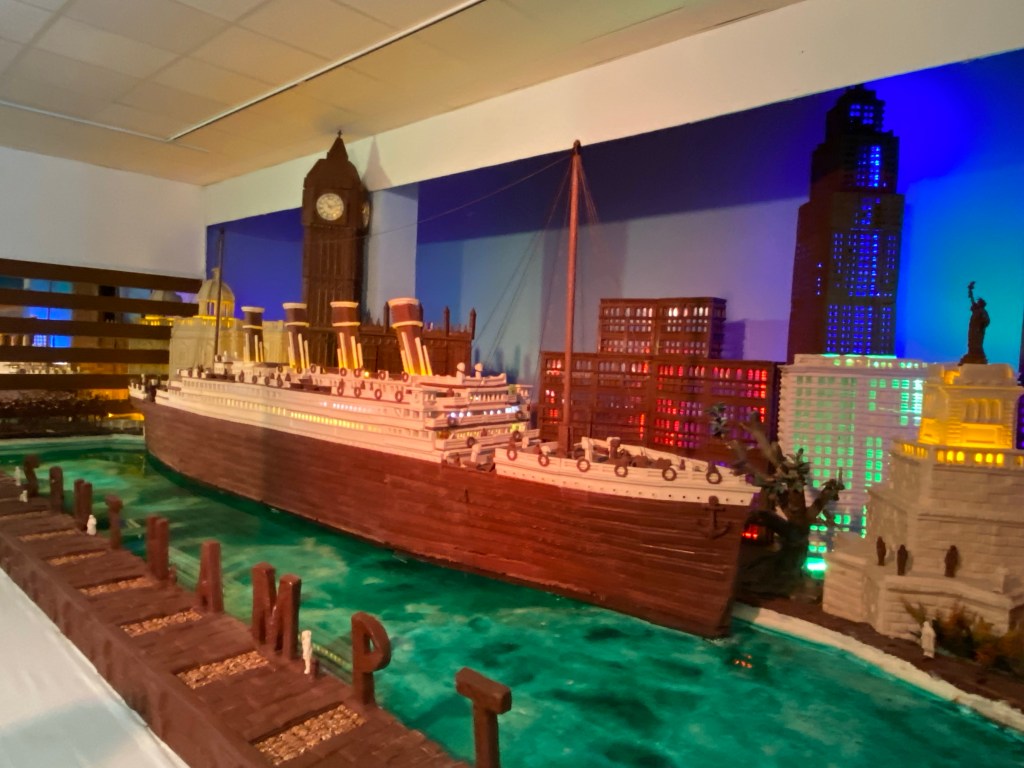 Det har varit en utställning här. Den visade Titanic. Gjord i choklad. Närmare bestämt 1500 kilo choklad. Den var riktigt mäktigt och välgjord. Det tog nån månad att sätta upp och ihop allting och antagligen gick det fortare att riva 😉 Den är nerpackad nu och all choklad ska transporteras vidare till både Paris och London för Titanic ska byggas upp på nytt.