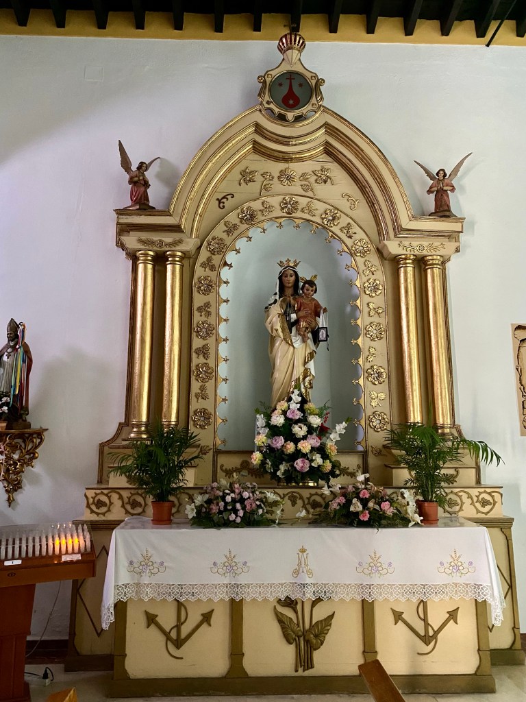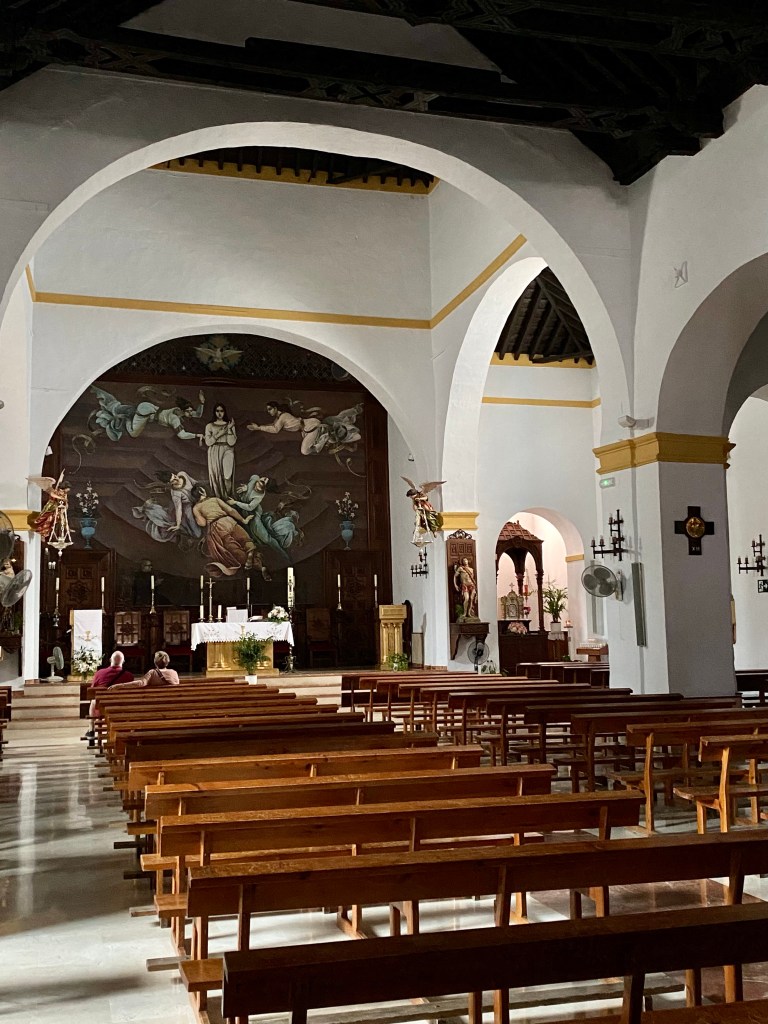 Mitt i byn ligger kyrkan Asución, från 1600-talet. Den har otroligt vackra bågar på utsidan med både text och bilder. Vi hade turen att höra klockspelet klockan 12 också. Inne i kyrkan hade man nog börjat med el-besparingar, för det var mörkt och lite svårt att se helheten. Men med redigerade bilder inifrån, så ser man ändå en del av den prakt som finns där.