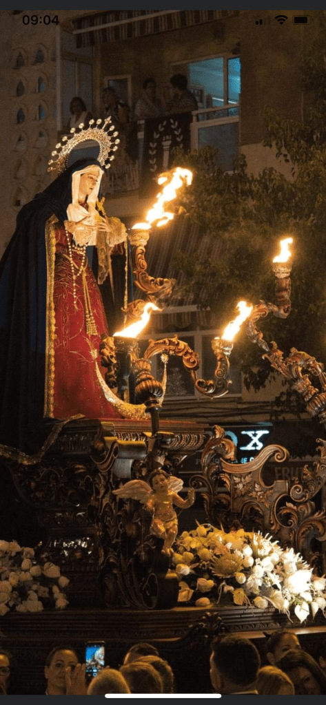 I lördags var det en massa olika processioner i VelezMalaga. Jag tror det var nåt 75-års jubileum Fast jag får inte det att stämma riktigt för processionerna brukar ju gå av stapeln under påsken.