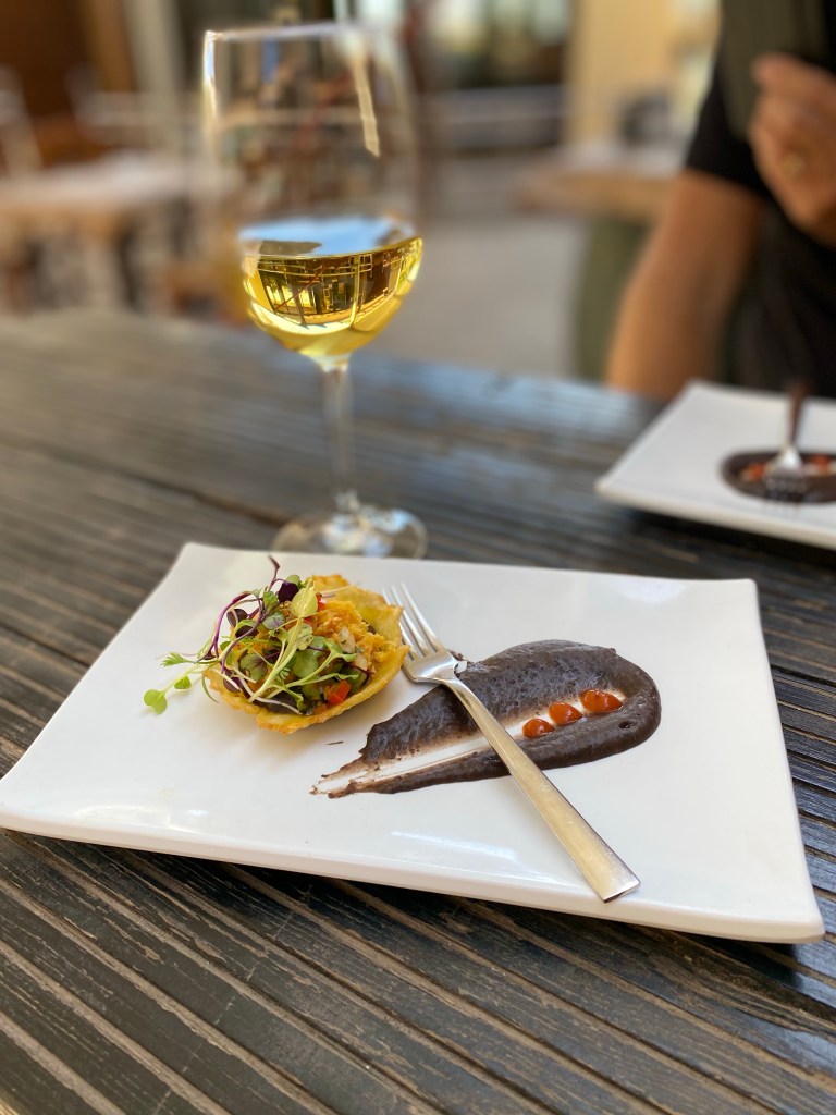 …. blev det så klart ännu mera tapas. Vi tycker det är ett väldigt trevlig sätt att äta lunch på 😀 Igår hoppade vi runt med ett par vänner och vi började på Donde Siempre. Där serverades en fiskrätt som i sej var ganska smaklös. Men tillsammans med den grymt starka lilla jalapeñosen blev det riktigt gott. God sesamsmak på de små kexen. Fint upplagt och trevlig servitör.