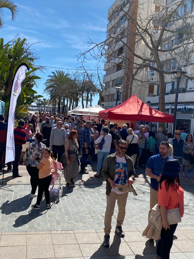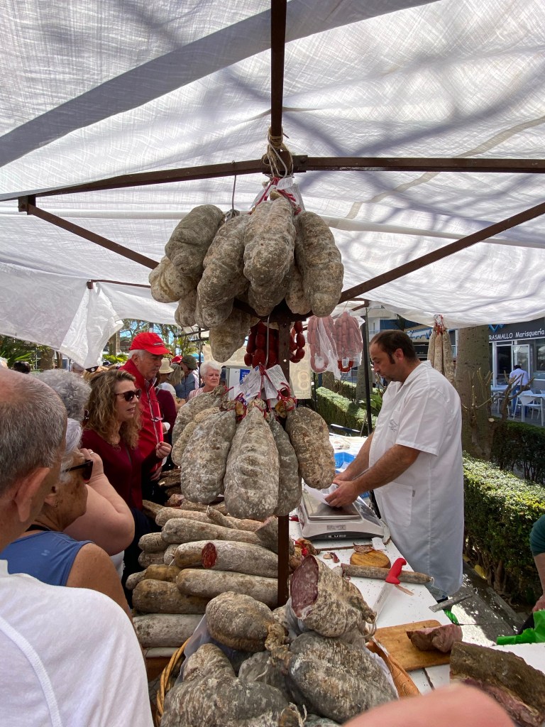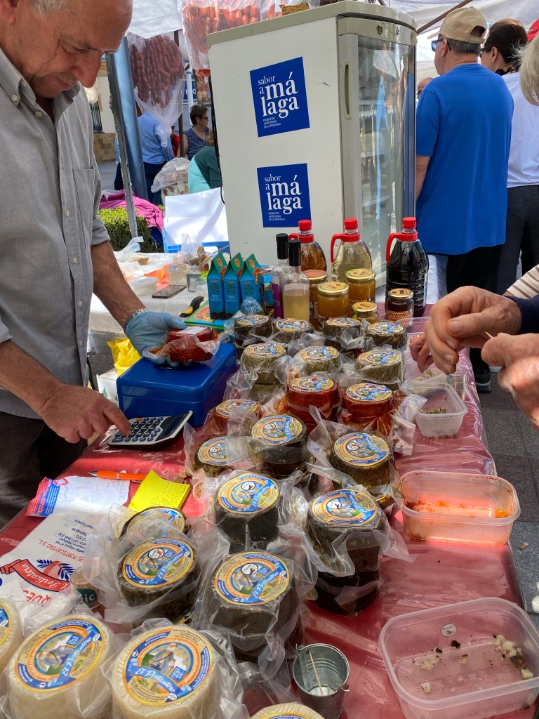 En marknad kan ju alltid dra mycket folk. Så var det i år med, på ost och vinmarknaden som hölls på vår Paradgata , Paseo Larios. Här hade man dukat upp många stånd med ostar, charkuterier och vin, från lokala producenter. Det fanns mycket att provsmaka men otroligt svårt att ta sej fram till marknadsstånden. En del smakprov fick vi dock men de föll oss inte i smaken. Eller rättare sagt, vi tyckte inte deras ostar hade så mycket smak. Så vi köpte inget. Vi satte oss och tog ett par tapas istället.