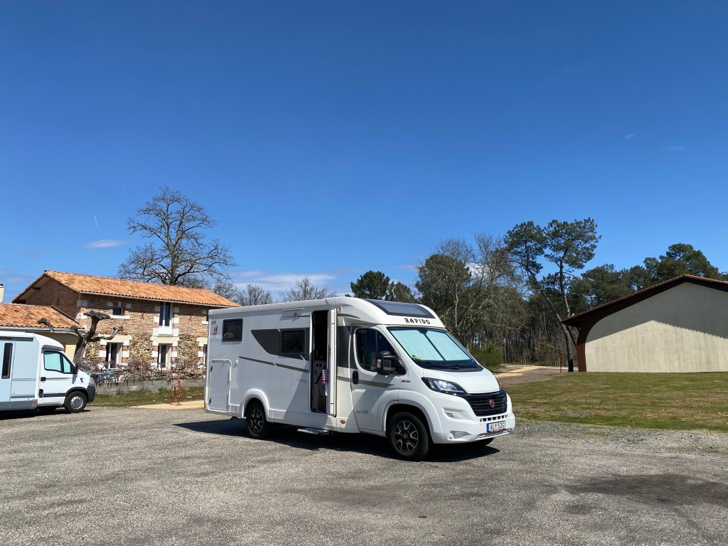 Sedan vidare upp genom Frankrike. Vi handlade lite franska ostar och goda bakverk i Dax innan vi stannade i Pissos. Här står vi fint mitt i byn, bakom kyrkan. Ingen service och gratis. Som tack för att vi får stå här, går vi till bageriet i morgon bitti och köper mera godsaker.