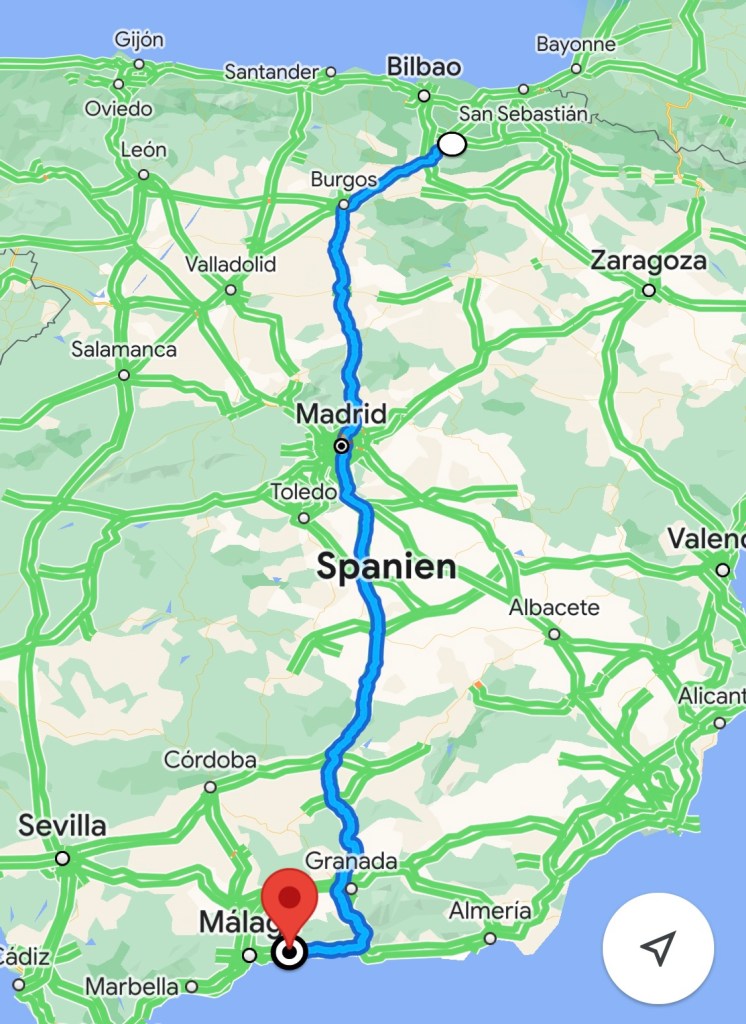 Raka spåret genom Spanien, förmodar att ni tog den yttre ringlinjen förbi Madrid…vilket flyt! Härliga bilder inkl resrutten. Tack för info och god fortsatt rull! 👍