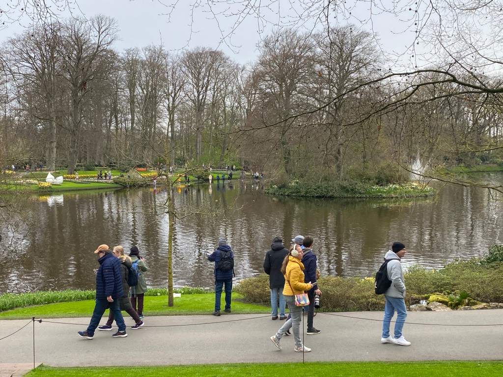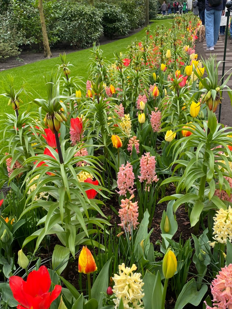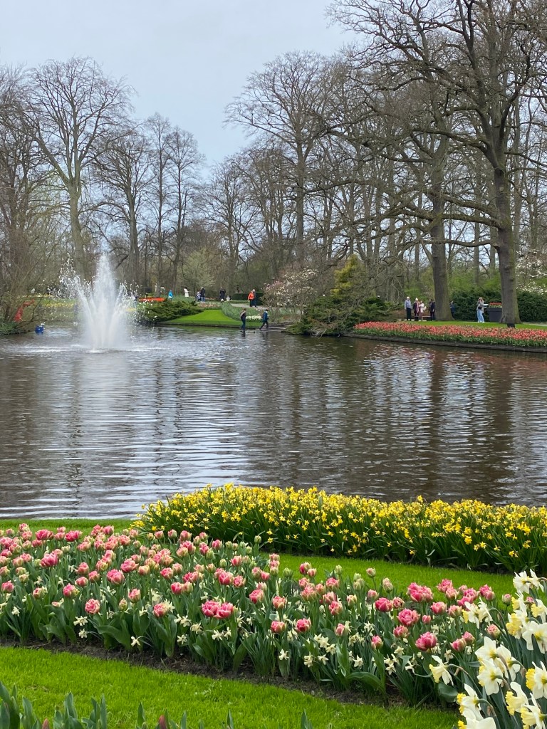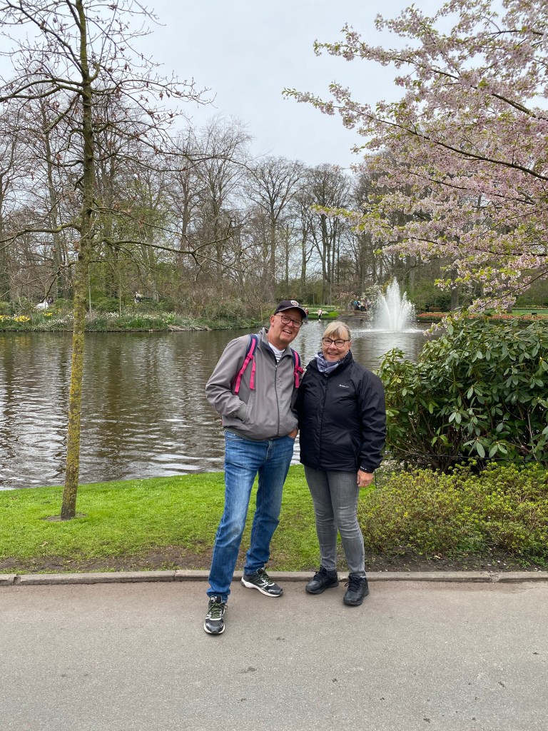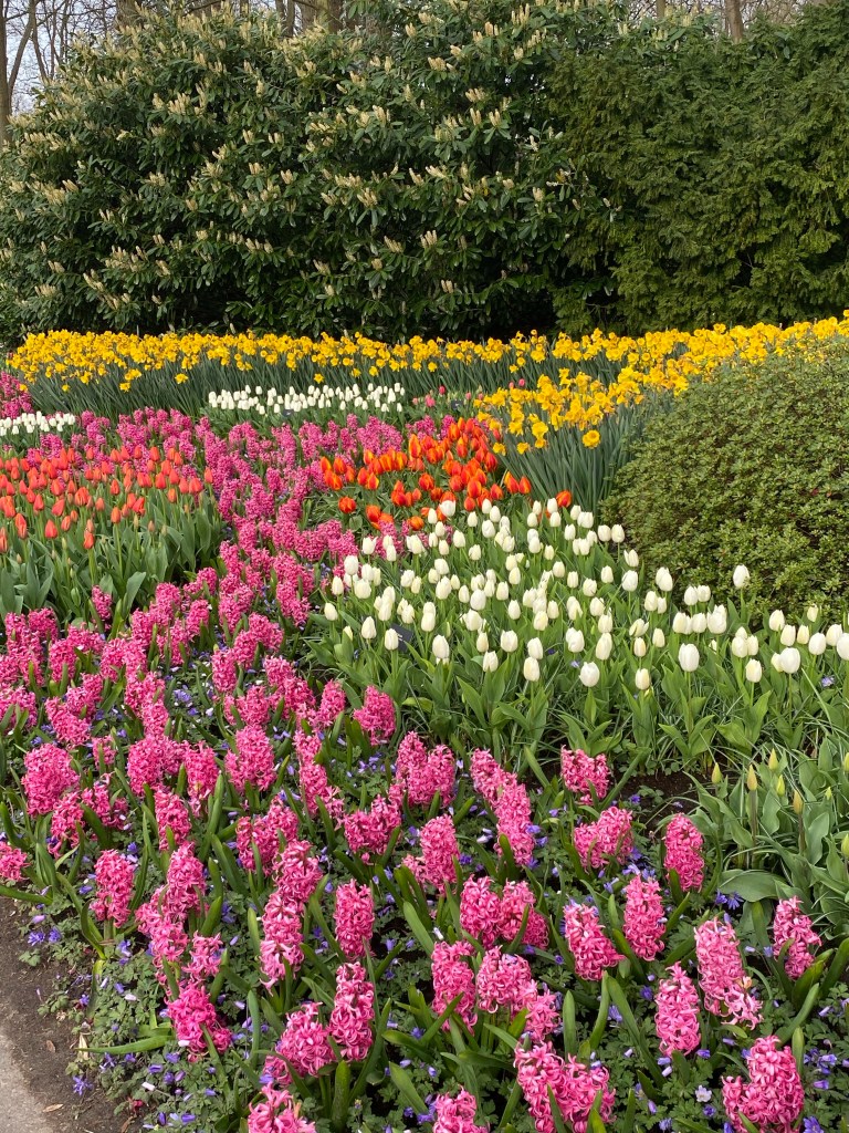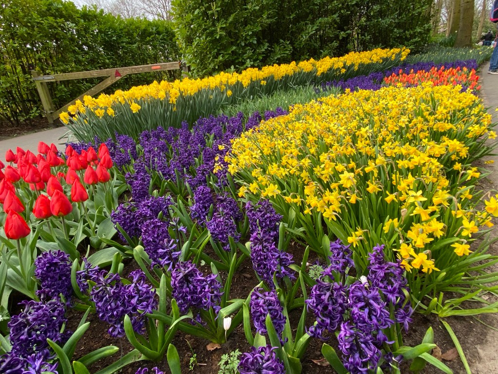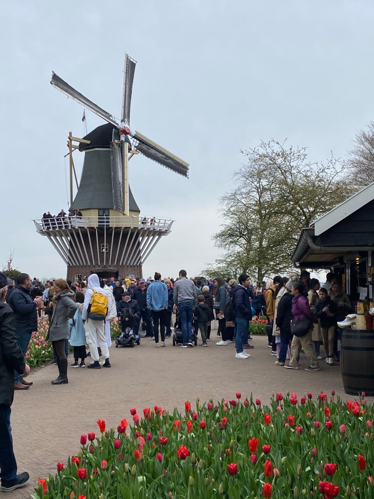Tulpaner från Holland – det har vi väl alla hört och/eller läst om nån gång. Här finns fält och åkrar som bäst syns uppifrån. Rabatter, odlingar och tulpaner tulpaner tulpaner. Och en hel del andra blommor också. Vi hade bokat biljetter till parken Keukenhof, på nätet innan vårt besök. Just påsken är otroligt välbesökt, då de var skönt att ha det fixat. När vi bokade fick vi välja vilken tid vi skulle komma. Antagligen är det så för att inte trängseln ska bli för stor.