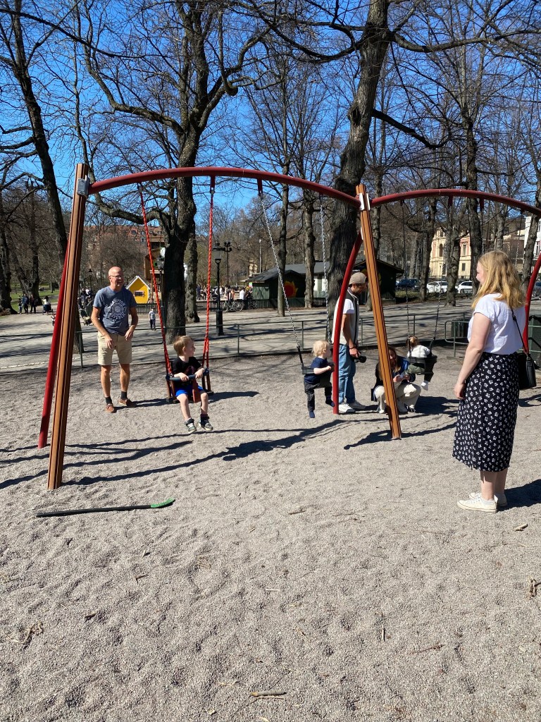 Sedan åkte vi vidare till nummer 1 och 3 Där blev det så klart också massa kramar och bus. På den lediga lördagen for vi in till Stockholm för att besöka fiket MrCake och leka lite i Humlegårdens lekpark Här kommer lite bilder från det besöket