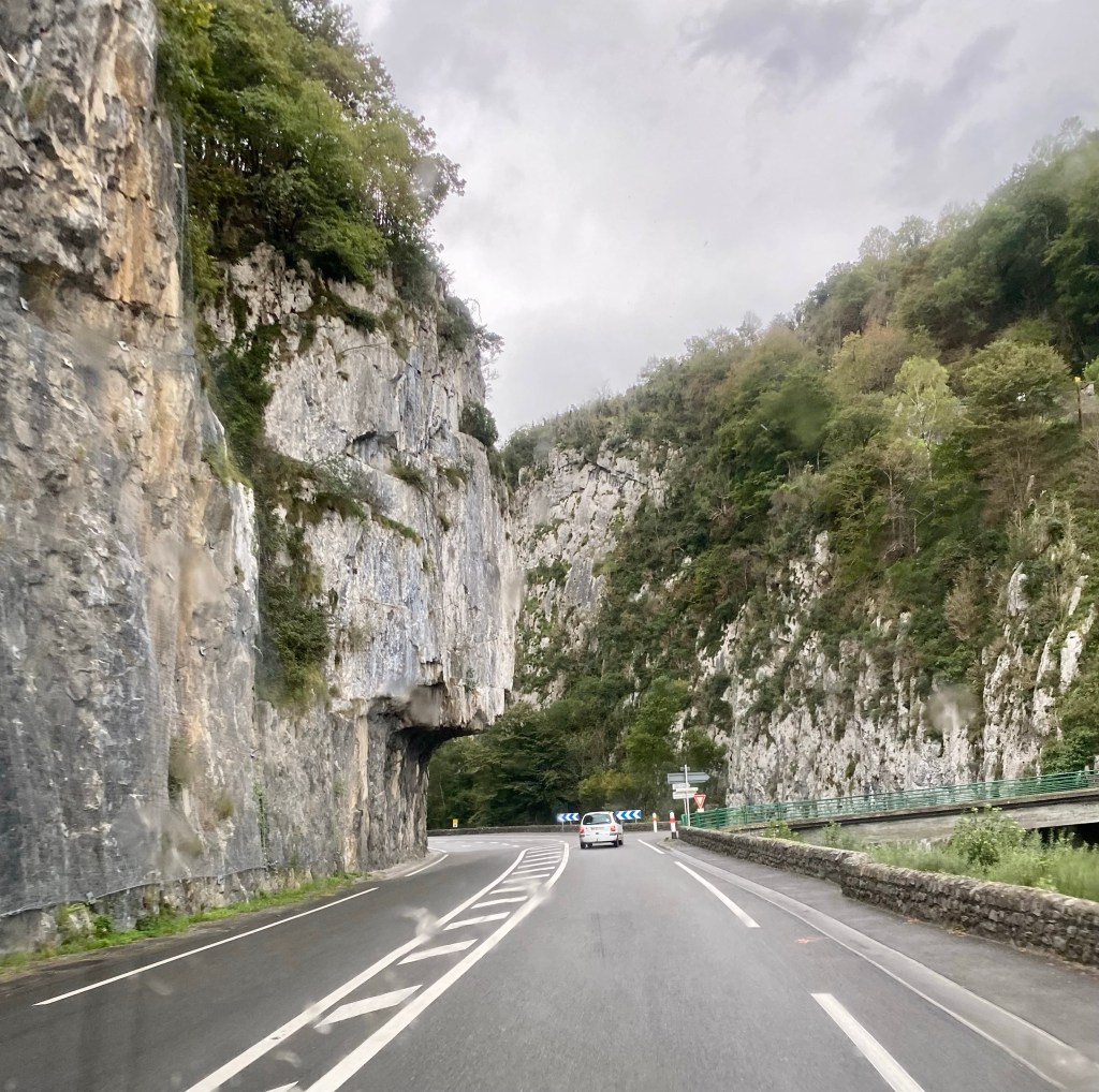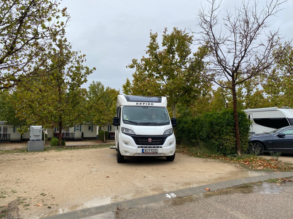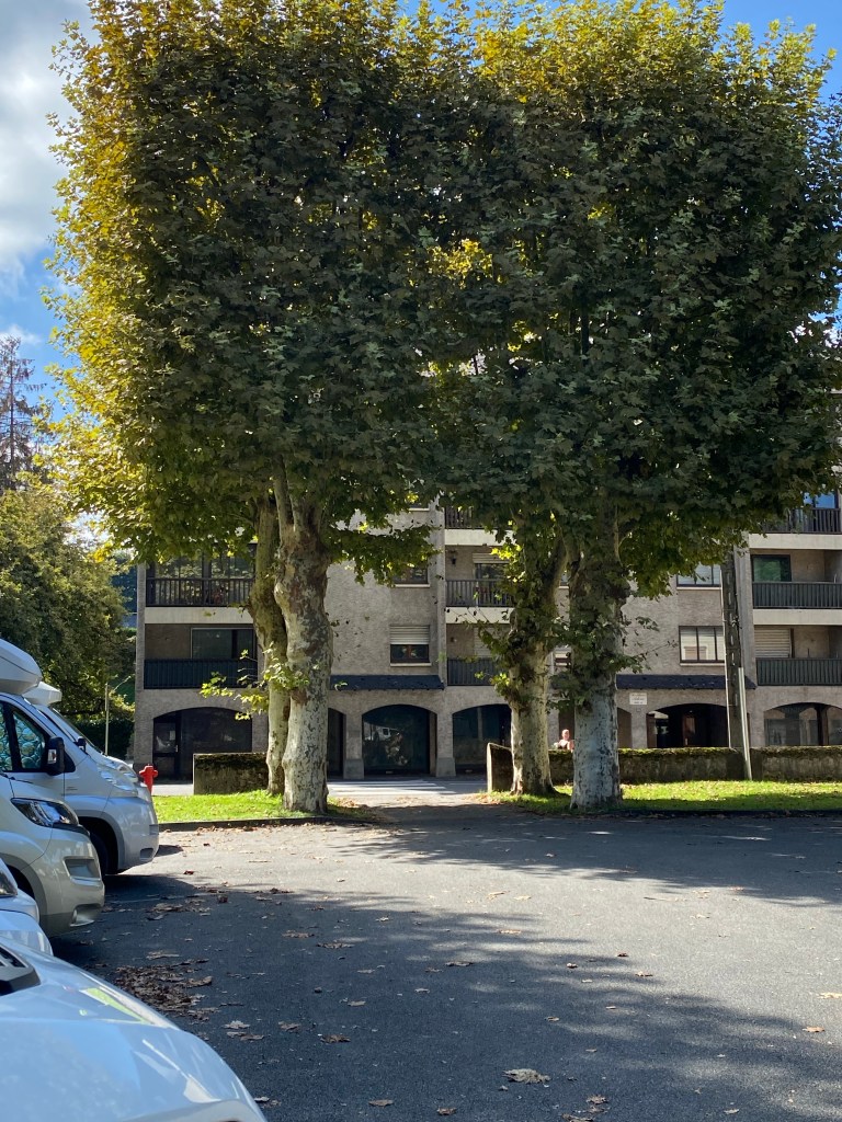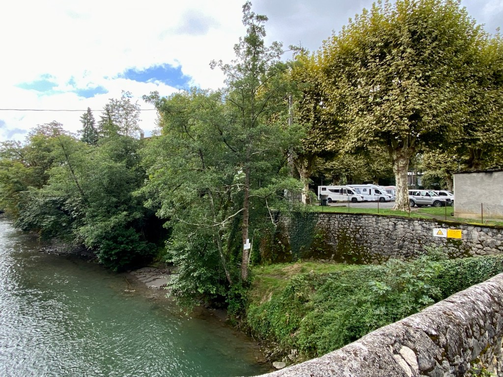 Efter 2 nätter i Pissos körde vi 15 mil till Oloron. Hittade en ställplats med plats för 7 bilar Gratis och med möjlighet till tömning/fyllning. Det kändes bra att vi var på plats så tidig för senare delen av eftermiddagen kom det massor av bilar som fick backa ut igen… koordinater hit är N43.1839906, W0.6083522