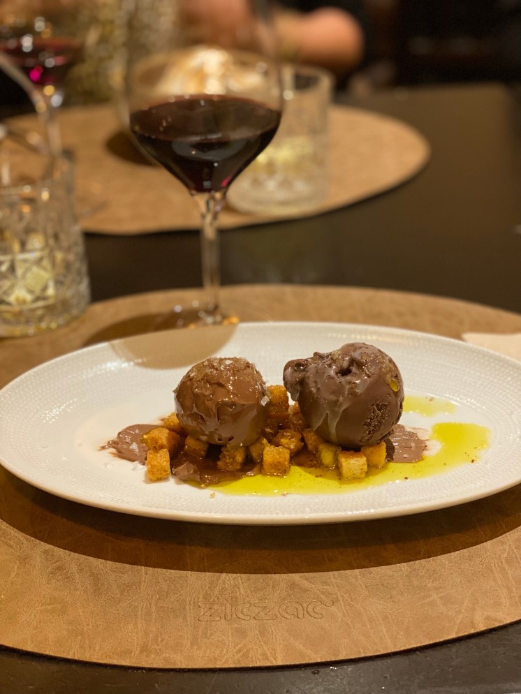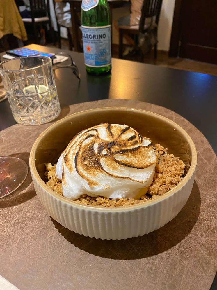 Till dessert valde Laila och Göran en Lemon pie, Håkan en Flan con helado de almendra och jag valde Pan con chocolate, aceite y sal
