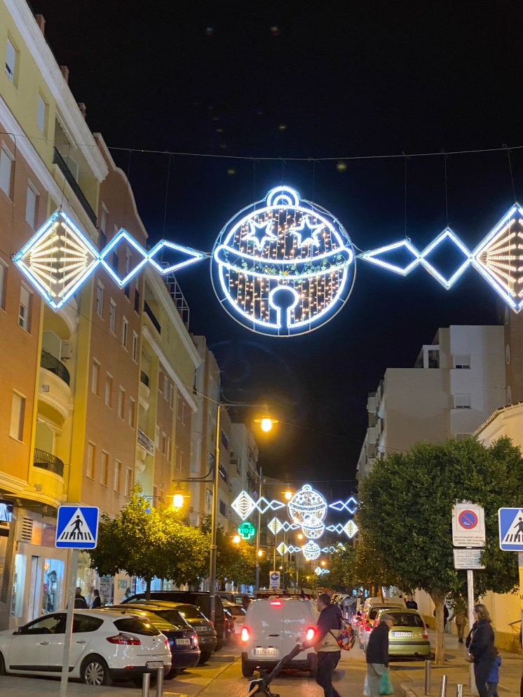 Vad häftigt med en så lång julkrubba! Julbelysningen är mysig och lyser ju upp under dygnets mörka timmar även i Spanien så klart.