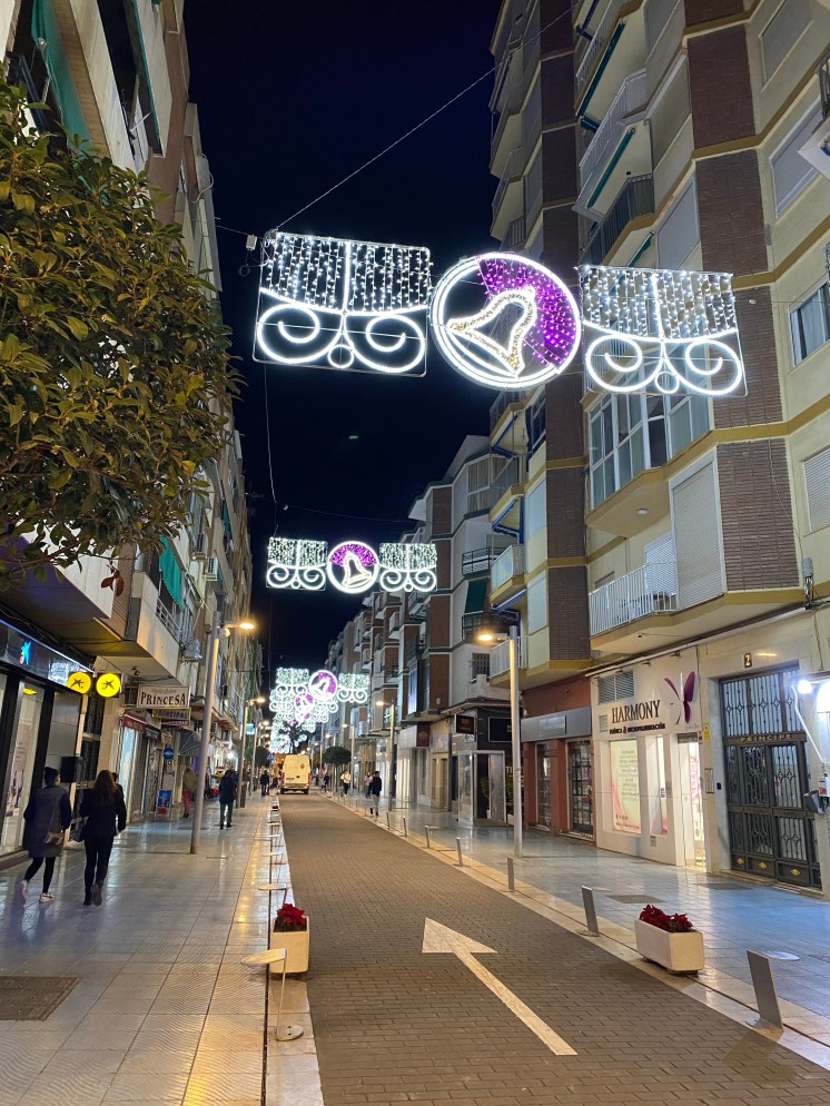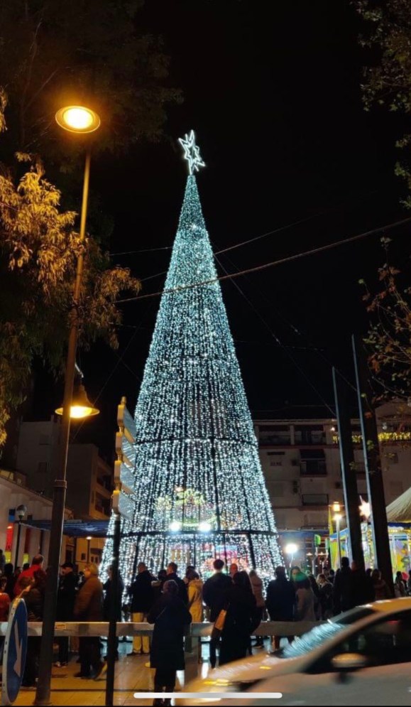 I tisdags kväll var det Ljuständning i vår stad Torre del Mar. Granen på torget har tänts. Över gatorna hänger det fina belysningar. Mängder av julstjärnor har planterats i krukor, rabatter och i rondeller. Det är pyntat och fint överallt.