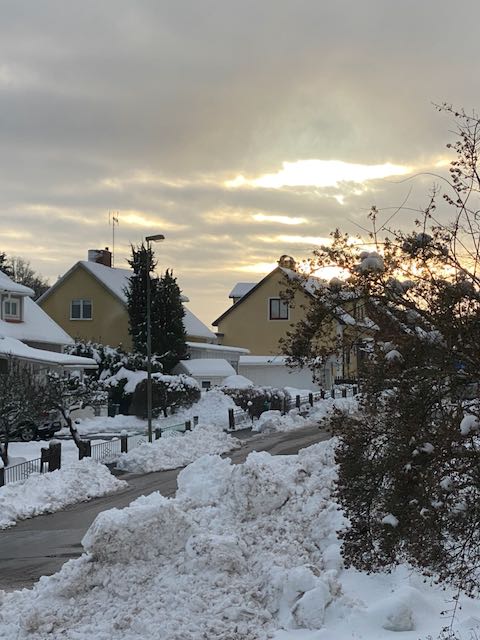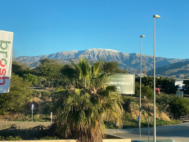 Januari började med kyla och snö i Sverige. Vi hade åkt till Sverige för att fira jul och nyår med barn och barnbarn. Mysigt att träffa dem alla men sedan hade vi nån vecka i januari där vi mest satt frös innan vi for tillbaka till Spanien. Väl tillbaka hann vi knappt landa förrän goda vänner ville vi skulle följa med ut och äta. Så klart vi hängde på. Den 19 januari ramlade första snön ner på toppen av La Maroma som är 2069 m ö h Vi ser det från vårt sovrumsfönster och håller lite koll så här på vintern. Lite spännade att jämföra klimatet mellan åren. Jag lyckades även få tag i en bukett krispiga tulpaner. Det är väldigt sällan vi ser dem härnere, men nu hade jag turen att hitta en bukett på marknaden. Arbetet kring poolen fortgick. Ombyggnad av hela innergården och alla trädgårdesgångar startade redan i september så det går inte så fort tyvärr.