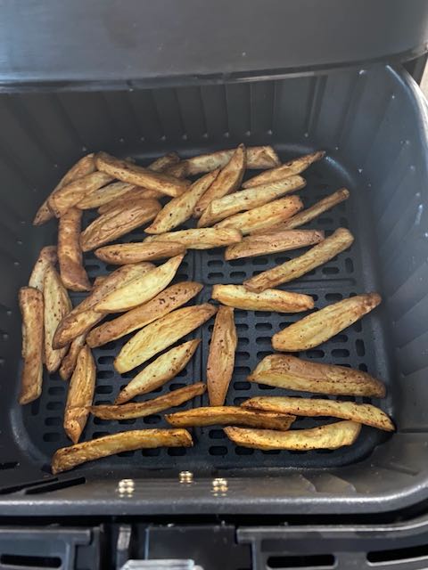 Jag köpte också en airfryer. Det är något jag gått och tittat på och funderat över i flera år. Men nu – äntlogen – slog jag till. Det blev en av märket Cosori som jag är riktigt nöjd med. Så klart vi skulle börja prova göra pommes, men det är numera det minsta jag gör i den. Det blir mycket grönsaker. Och kyckling. Och lite fikabröd. Ja den är bra till mycket och jag ångrar mej inte alls att jag köpte den.