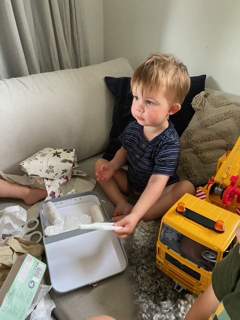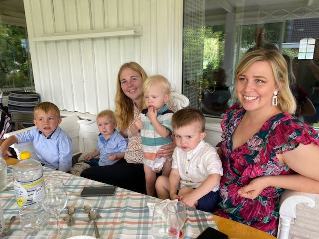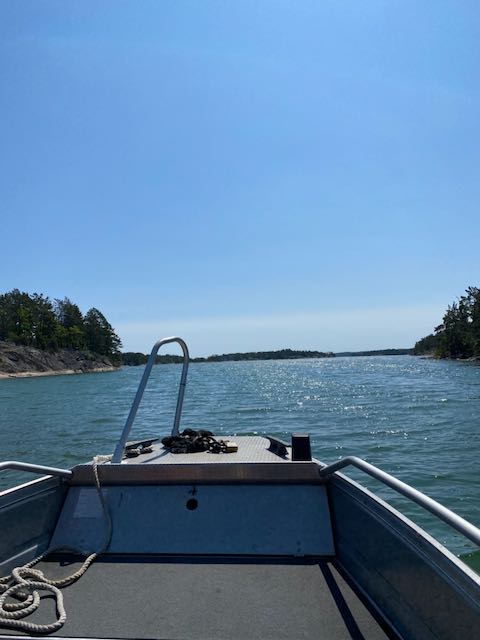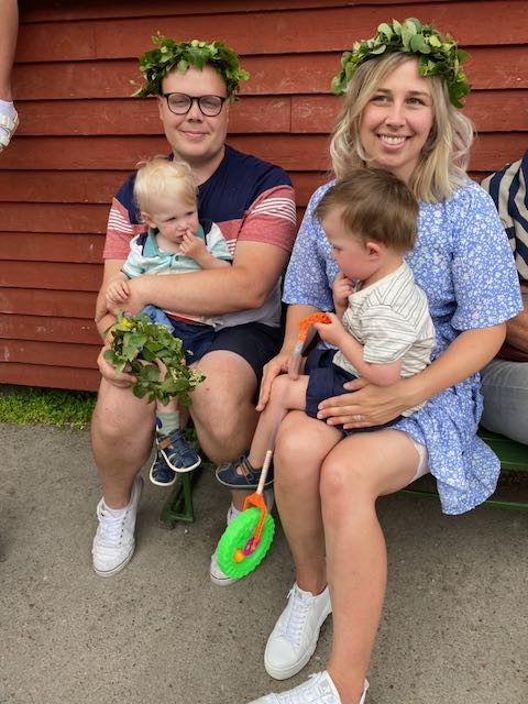 De första dagarna i juni tillbringade vi hos Elin och familjen. Loke fyllde 4 och blev stora killen. Ett fiskespel var uppskattat! Samtidigt var det marknadsdagar och prinsarna fick den stora äran att bla sitta i en brandbil tillsammans med en brandman. Lycka! Det var också ett springlopp på några hundra meter för de minsta med medalj och gotte-påse. Sedan fortsatte vi ut till Tjust skärgård och en liten ö utanför Loftahammar. Där har våra goda vänner ett sommarhus. Vi blev hämtade med båten och tillbringade en fantastisk försommardag tillsammans med dem.
