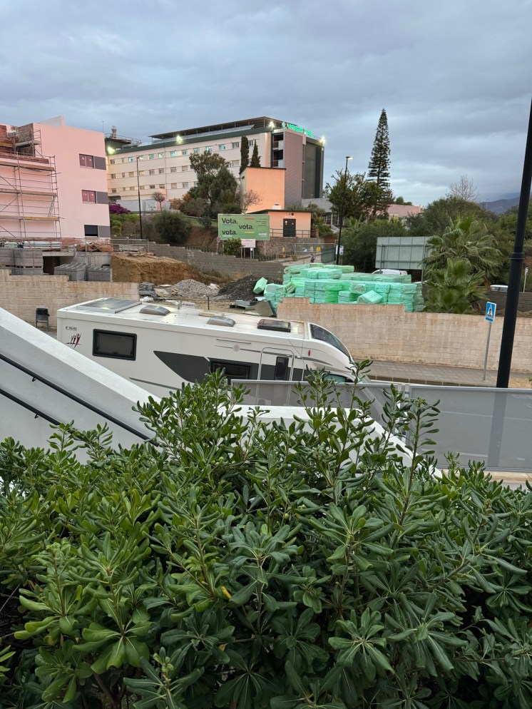 Tack Vi brukar ha den precis utanför fönstret vid lägenheten, här i Torre del Mar (strax ö om Malaga) men när vi kom så höll man på att renovera vår mur ut mot gatan och då ville vi inte stanna där. De höll på med långa armeringsjärn mm Tyckte då det var bättre att stå ett kvarter bor, där vi stått flera år tidigare. Men men….. Nu har vi iallafall flyttat den utanför vårt sovrumsfönster och det känns bra.
