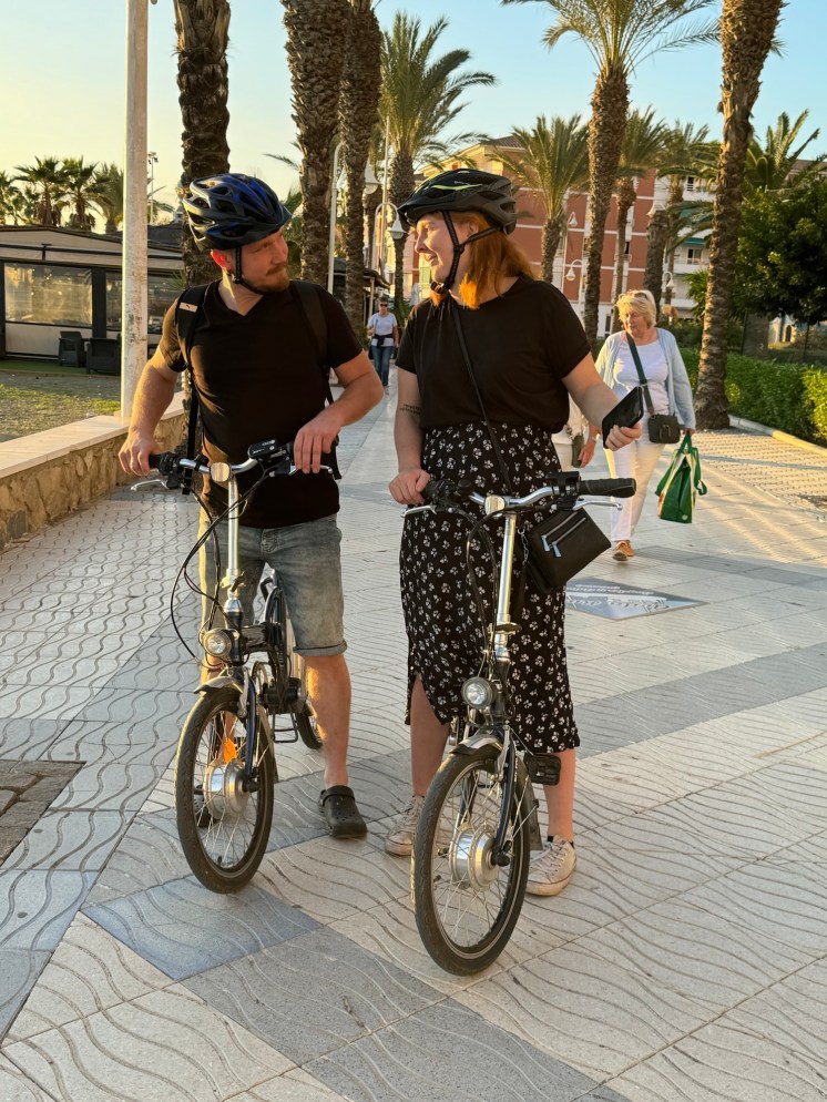 Vi cyklade utefter strandpromenaden på tisdagen då de kom. Härligt att bara rulla omkring och vi åt både tapas och god middag på restaurang. Vi njöt av solen och värmen. Och av att ses.