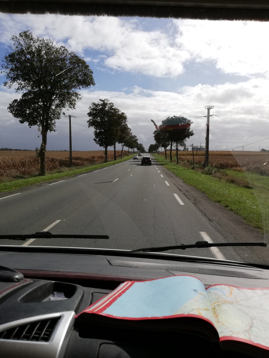 Idag blev det bara en ren transportsträcka. Vi for från Fougères i regn och hade regn utefter vägen. Men ju längre söderut vi kom desto bättre blev det. När vi stannade på ett ställe kring lunch åkte shortsen och T-shirten på! Äntligen! Vi passade också på att handla lite franska godsaker som får följa med …